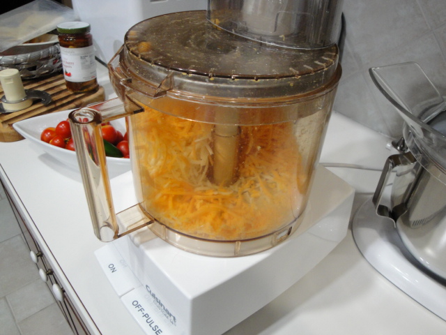Because a couple of my peppers were pretty small I had some leftover potato ( ya hoo-a start for tomorrow nights dinner). So I oiled a small baking dish, filled it with the potatoes, topped it with some cheese, covered it with plastic wrap and into the refrigerator it went. An alternative would be to make little mounds of potato on the sheet pan with the potatoes, top with cheese and bake.