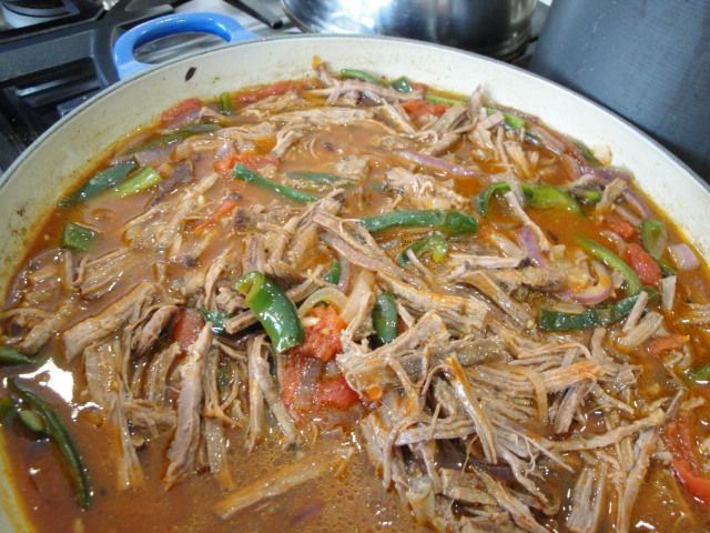 The name of this recipe translates directly into “old clothes”, as the colorful shreds of meat and peppers and onions resemble a pile of colorful rags.  I often hesitate to tell this to people until they’ve tasted it, as it seems to be off-putting to some but I personally love the descriptiveness of the name.