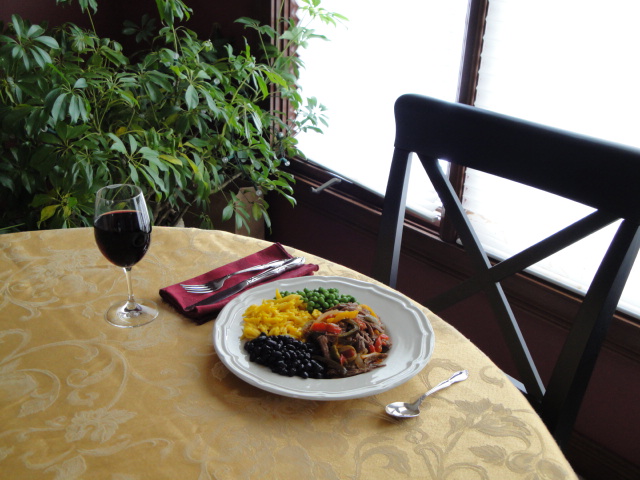 The only other thing I serve with this meal are black beans.  I cook mine from dry, but feel free to open a can and warm them up.  And last, but certainly not least pour yourself a nice glass of red wine  and enjoy!