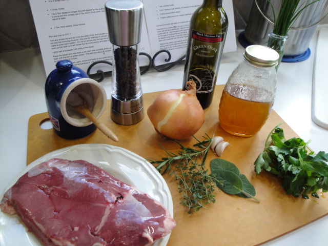 • 1 lb. duck breast removed from refrigeration approximately 30 minutes before cooking