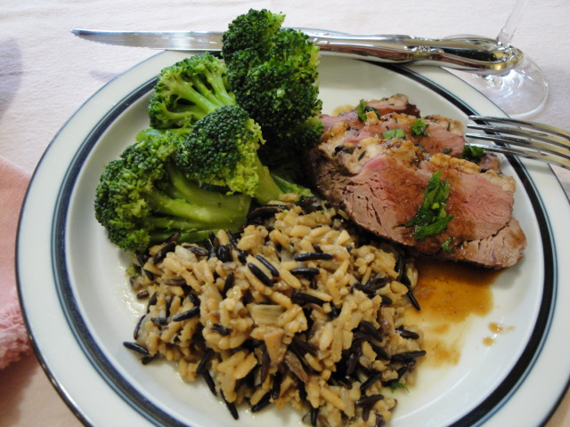 Arrange on warm plates and drizzle with the pan sauce.  I’d planned to serve this with steamed asparagus, but it’s still a bit early here in Ohio for local stuff and the imported at the market was sad.  So microwave steamed broccoli it is.