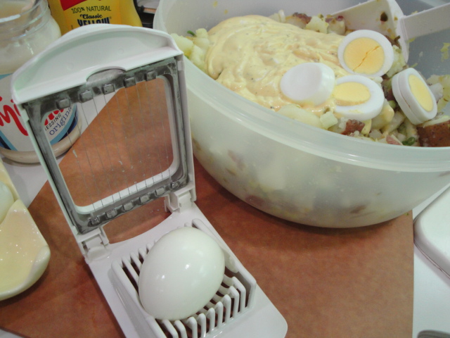 Because a couple of my peppers were pretty small I had some leftover potato ( ya hoo-a start for tomorrow nights dinner). So I oiled a small baking dish, filled it with the potatoes, topped it with some cheese, covered it with plastic wrap and into the refrigerator it went. An alternative would be to make little mounds of potato on the sheet pan with the potatoes, top with cheese and bake.