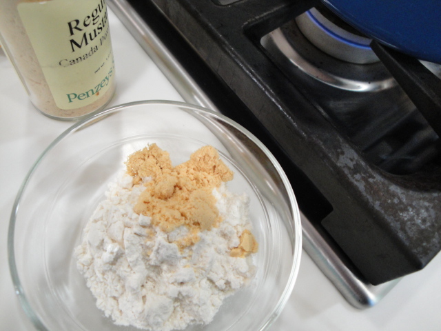 Mix the flour, sugar, baking powder, salt (if you are using unsalted butter) and warm brown spice of your choosing in a small to medium sized bowl. Today I chose coriander because I love it’s faint citrusy character, but cinnamon, nutmeg or allspice would be great as well.