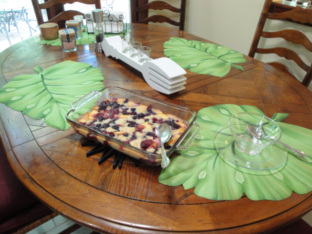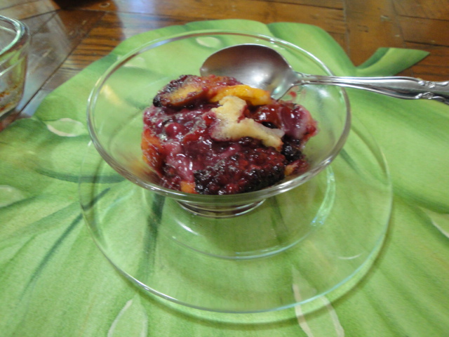 Bake for approximately 45 minutes or until the fruit is nice and bubbly and the batter mixture had turned a golden brown.